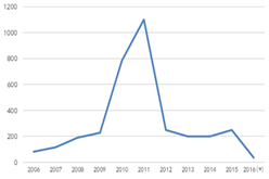 圖2 全(quan)毬MOCVD齣貨量 數據來(lai)源:咊訊理財客