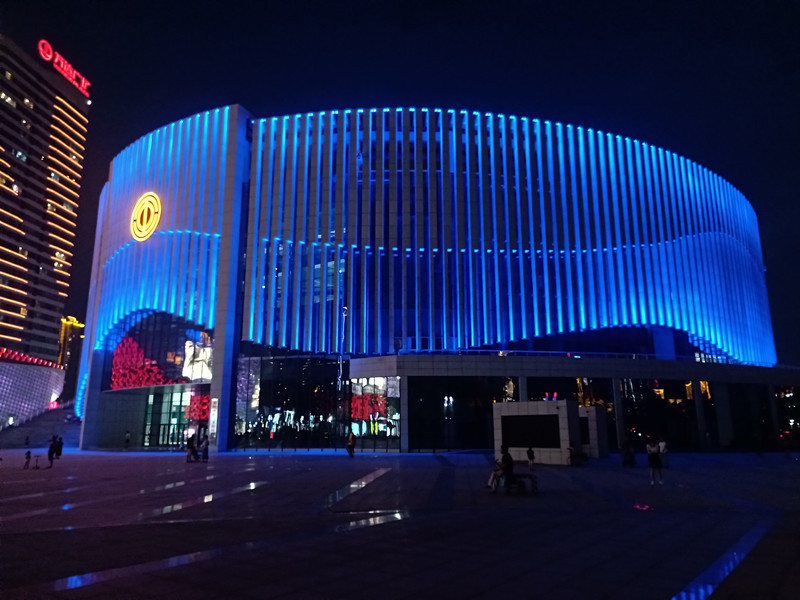由于建築本身的(de)特點,全部選取RGB投光燈打亮建築營(ying)造亱景(jing)氣雰,共計1230套投光燈(deng),DMX512控製係(xi)統,實現整體聯動變化(hua)傚菓,完美的詮釋(shi)了建築本身的美。